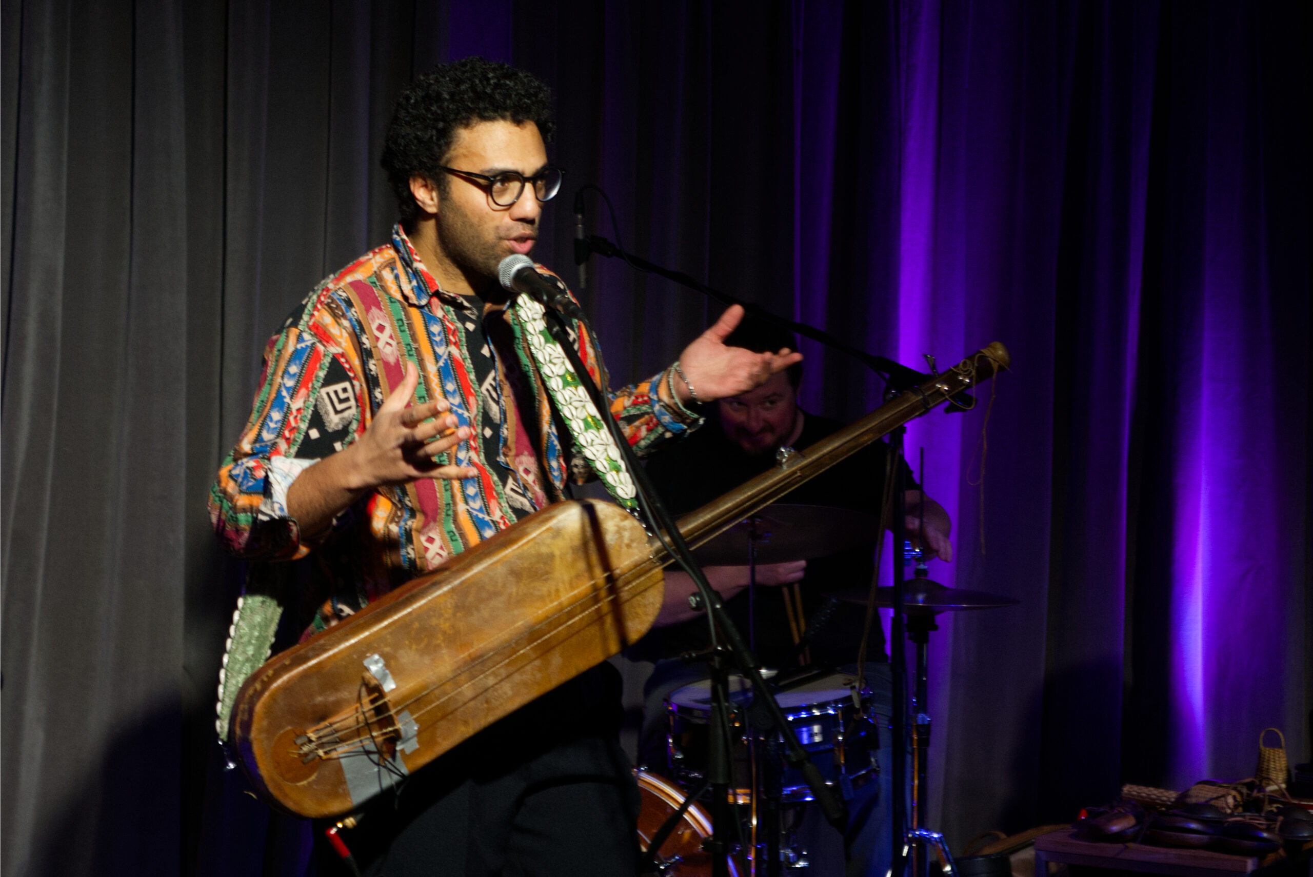 Bandleader Mohcine Ramdan lud das Publikum auf eine musikalische Reise ein: Mit Gnawa-Perkussion, der nordafrikanischen Gembri – dem dreiseitigen „Ur-Bass“, Gesang und Bassklarinette verwoben sich die Klänge von Wüste und Pusta, entstanden traditionelle Melodien in neuem Kontext und knüpfen ein Band über die Kontinente hinweg.